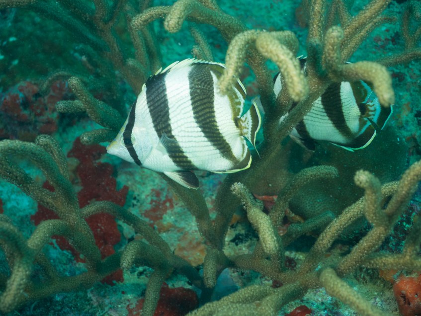 Banded butterflyfish Published March 18, 2016 at 1280 × 960 in Banded butterflyfish Banded butterflyfish Pilot Ship Wreck, Oranjestad, Aruba, © 2016 Bob Hahn, Olympus OMD/E-M1 OLYMPUS M.12-40mm F2.8 at 40 mm, ISO: ISO 200 Exposure: 1/125@f/5 Share this: Click to share on X (Opens in new window) X Click to share on Facebook (Opens in new window) Facebook Click to share on LinkedIn (Opens in new window) LinkedIn Click to share on Pinterest (Opens in new window) Pinterest Like Loading...