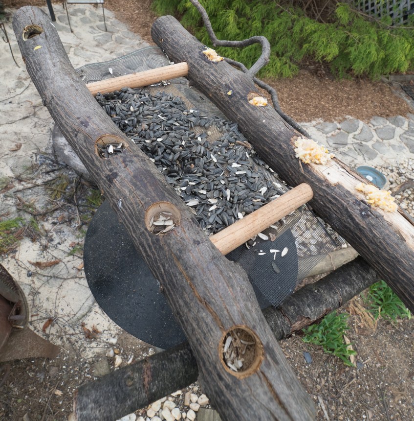 Bird Feeder, Back Yard, Bethlehem, PA, © 2017 Bob Hahn, E-M1MarkII OLYMPUS M.7-14mm F2.8 at 7 mm, ISO 400 Exposure: 1/160 sec@ƒ / 5.6