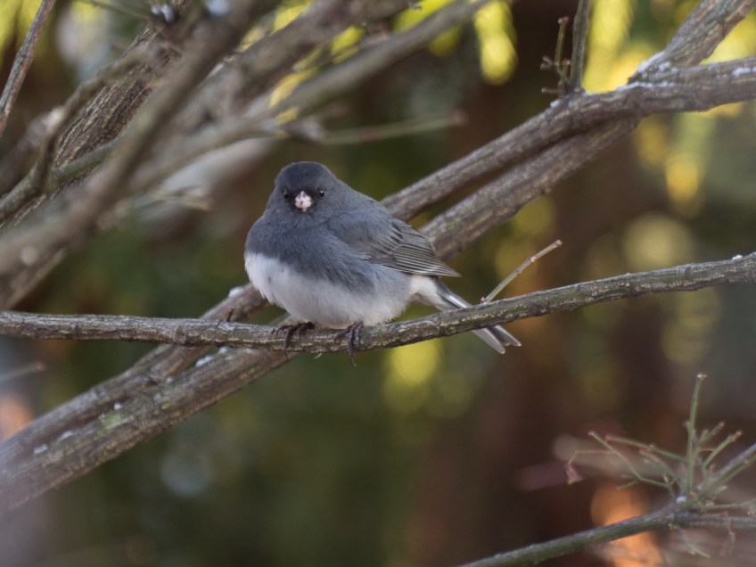 Dark-eyed Junco, Back Yard, Bethlehem, PA, © 2017 Bob Hahn, E-M1MarkII OLYMPUS 70mm-300mm Lens at 425 mm, 800 Exposure: 1/40 sec@ƒ / 7.9