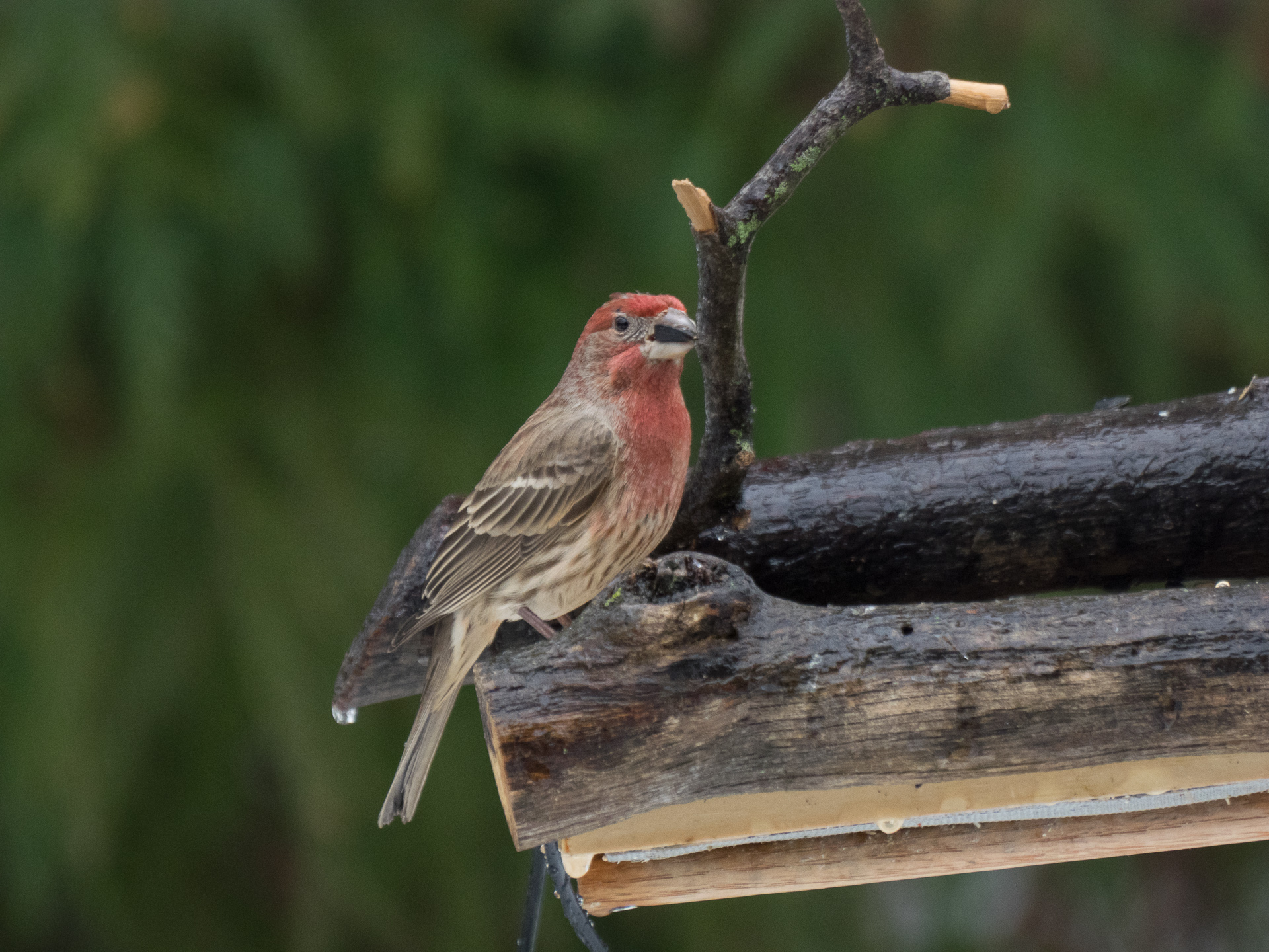 House Finch, Back Yard, Bethlehem, PA, © 2016 Bob Hahn, Olympus OM-D/E-M1 OLYMPUS 70mm-300mm Lens at 425 mm, ISO 800 Exposure: 1/60@f/7.9